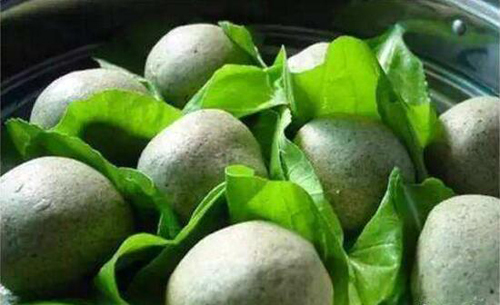 每逢清明節(jié)前夕,家家戶戶都要從野外采集各種供食用的青草藥,用來制作清明叛。常用的草藥有艾草、洊麻葉、雞矢藤、清明菜(白公翁)、薺菜、枸杞葉等。將需用草藥洗凈、去梗、煮熟,拌在預先浸透濾干的糯米(加適量大米)中,用碓皿番成飯團,添進紅糖搓勻,制成飯塊蒸熟即成。